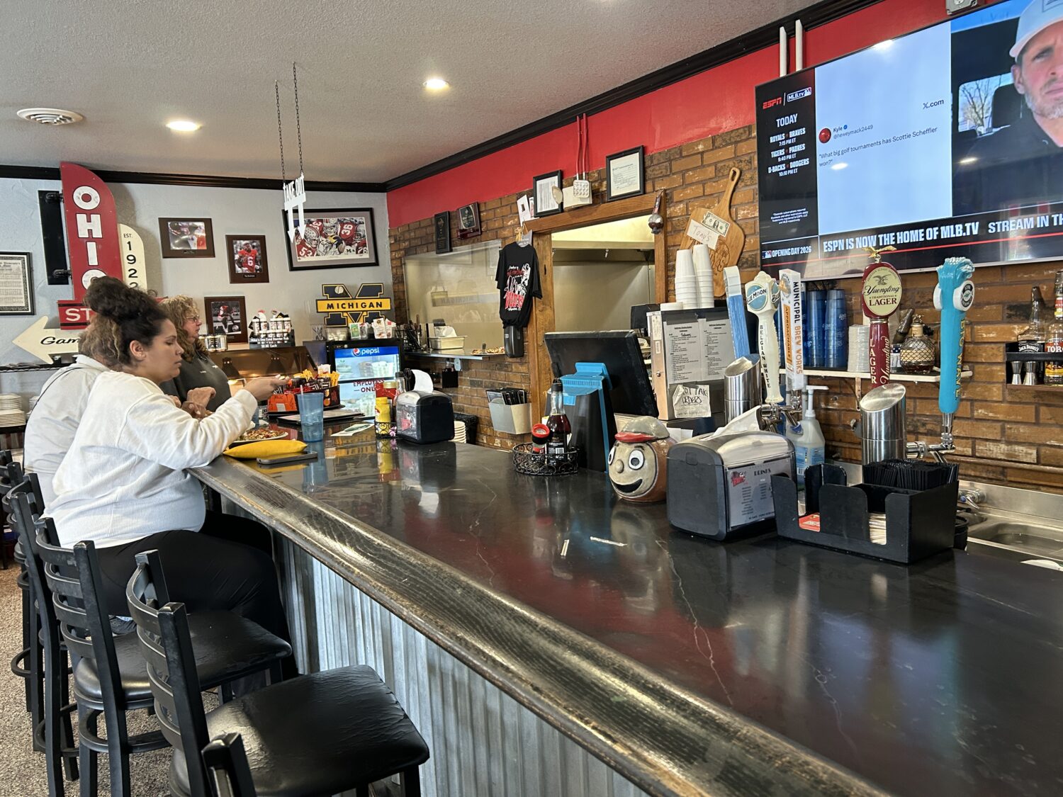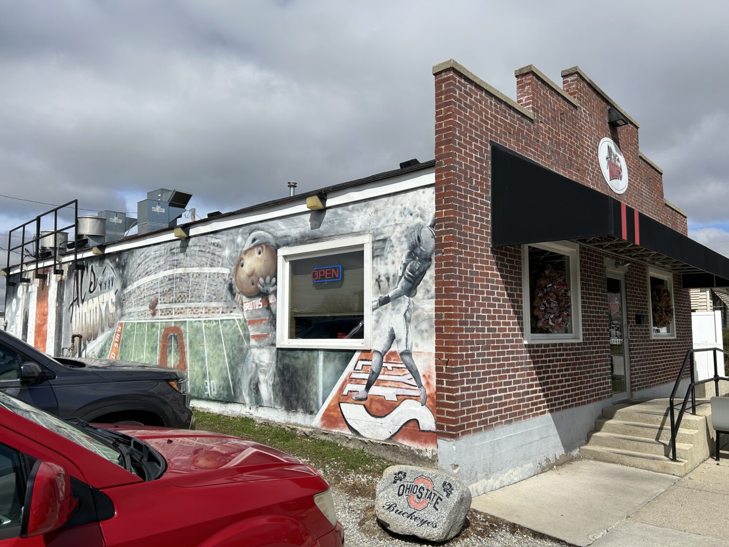 Al’s Woody’s Diner is an Ohio State backer place on the edge of Wapakoneta. The Woody in the name refers to Woody Hayes, the historic Ohio State Coach. The decor is all Ohio State, mostly Ohio State football. There was even a Buckeye gumball machine! Lots of memorabilia and pictures hung on the walls. Because it is a requirement to be an Ohio State fan if you live in central Ohio, we felt right at home.