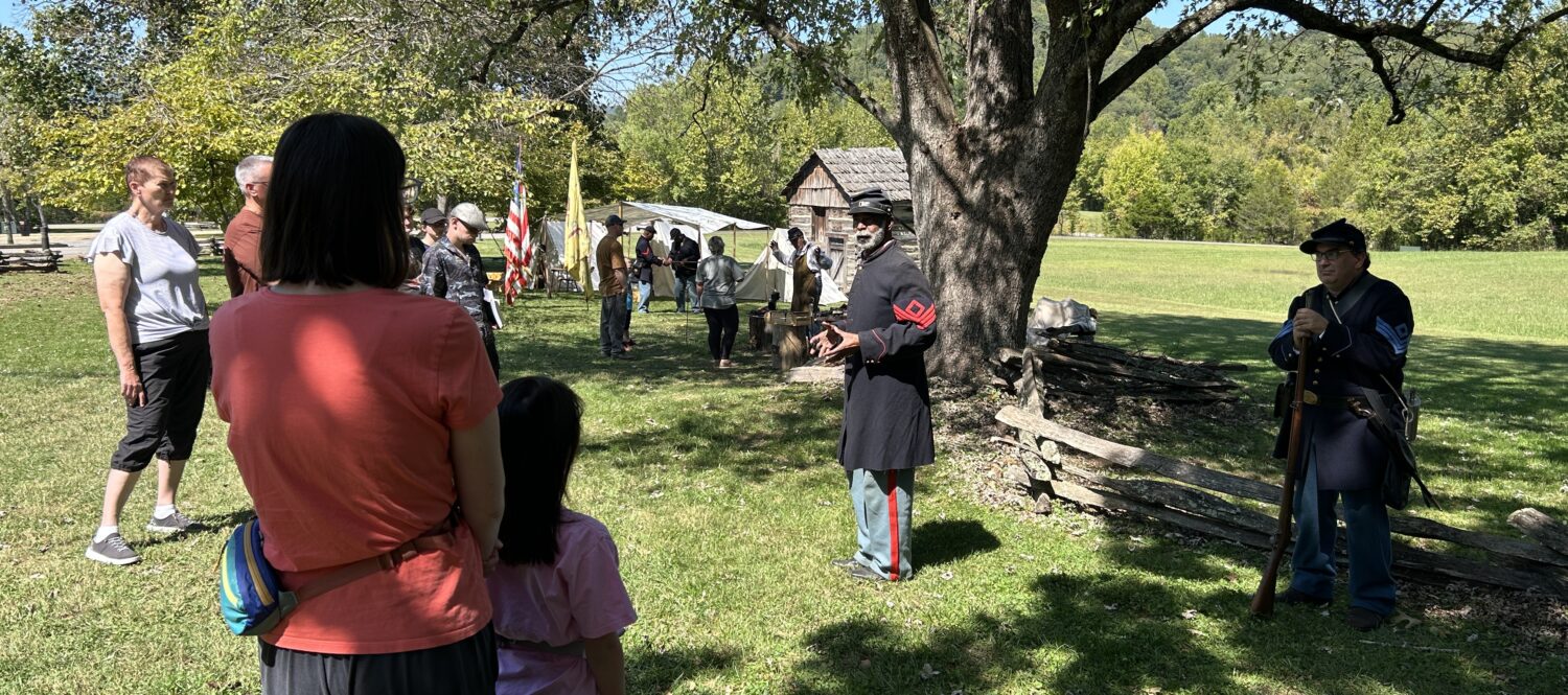 Ranger Layton worked closely with the soldiers from Camp Nelson. They did firing demonstrations throughout the day. I was able to listen to the historical talk that the Camp Nelson leader gave. He talked about Kentucky being the last state in the Union to allow African Americans to be soldiers. He also talked about the dangers of being an enslaved person during the Civil War in a state that didn’t secede from the Union. It was very interesting.