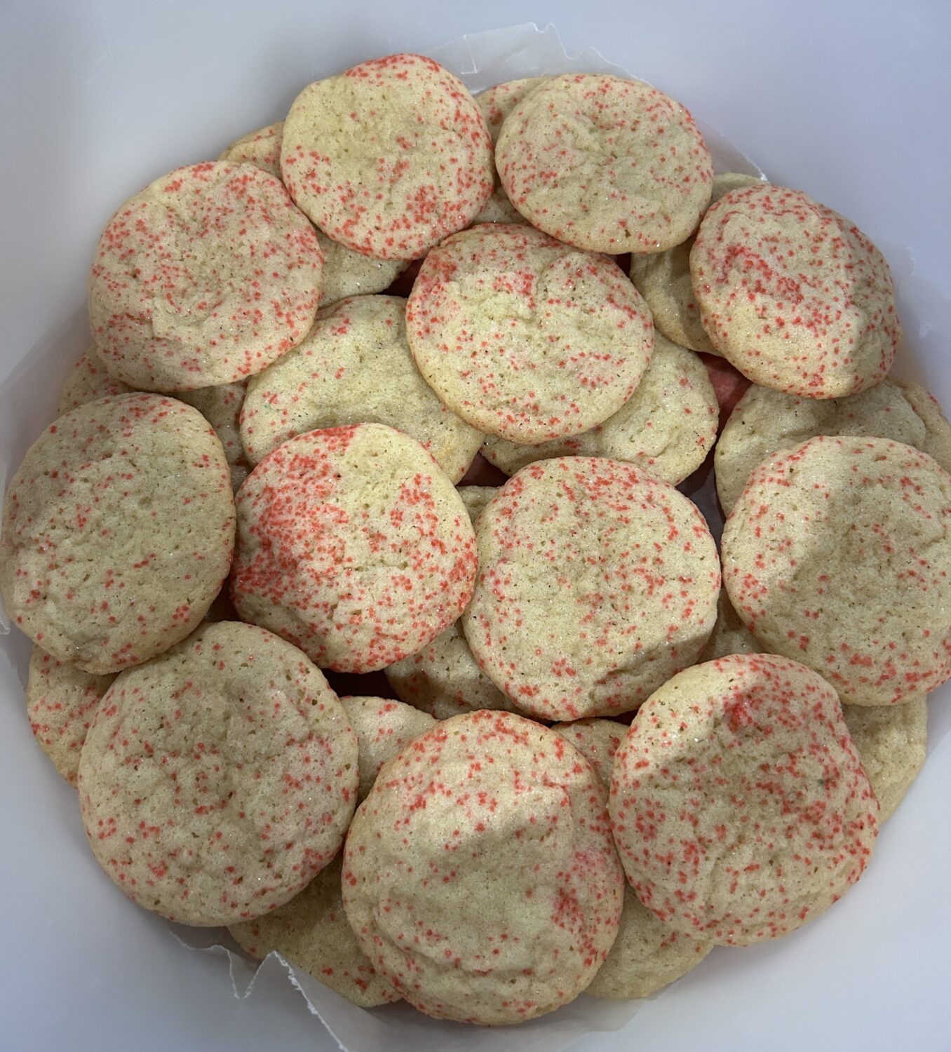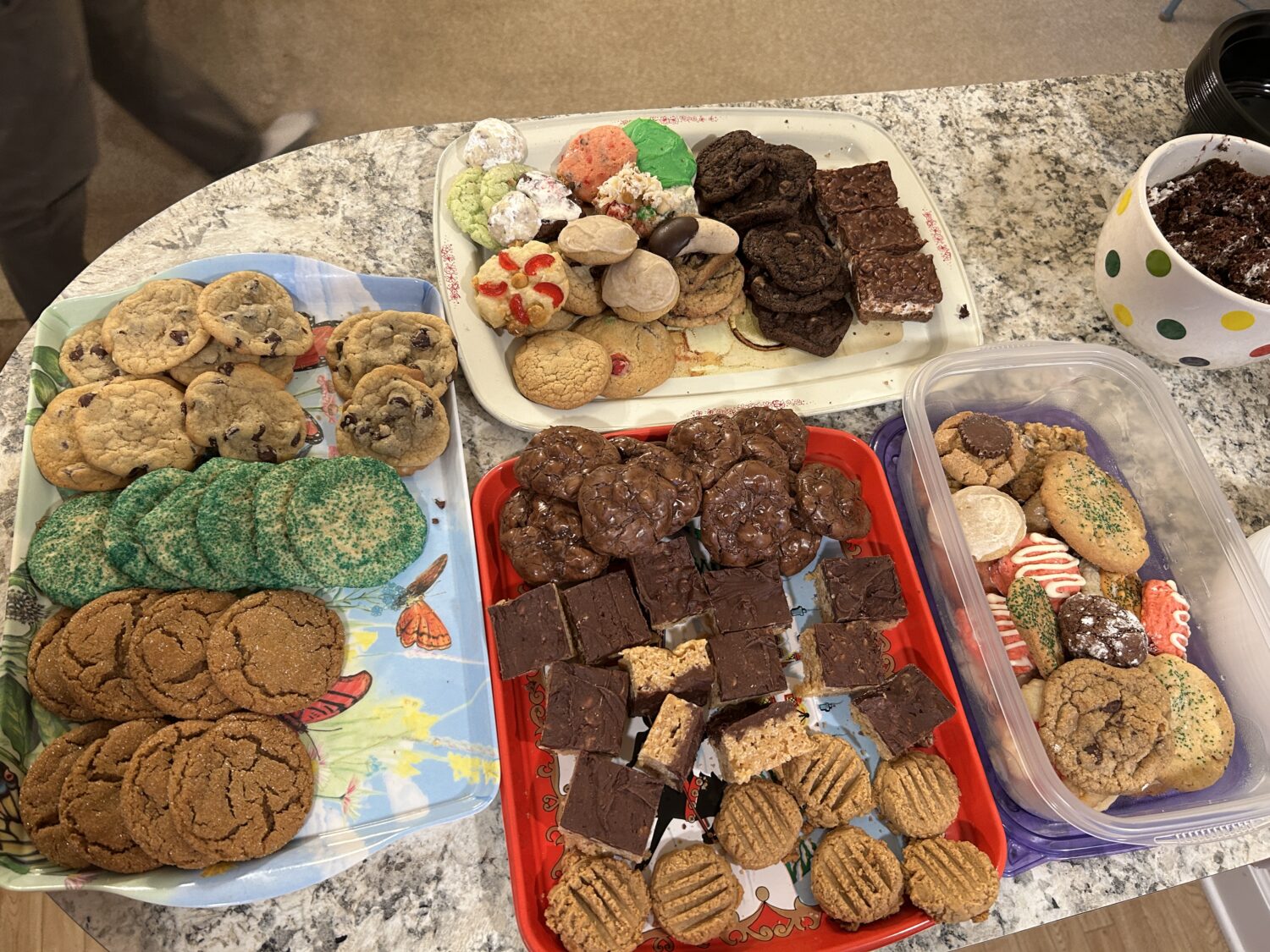 I take most of these cookies to the family Christmas gathering, usually the Saturday after Christmas. In addition, I take along carry out containers so that people can select a mix of cookies and take them home. I still brought home cookies out the wazoo. That’s okay. Tom and I are pulling them out of the freezer one container at a time. I expect them to last into February!