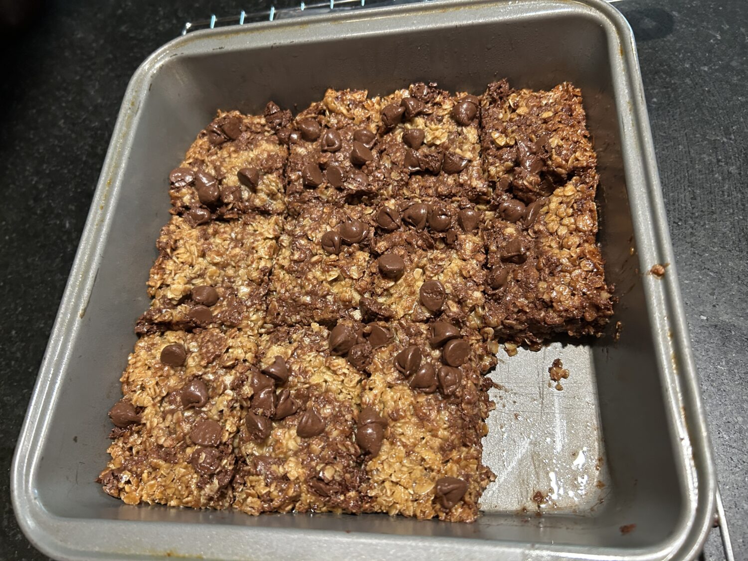 So, what cookies did I make during December? I started with flapjacks, which are English oatcakes. We discovered them during our trip to Great Britain last year and they seemed like a (slightly) healthier version of cookies. The trick to flapjacks is the golden syrup. I tried this recipe, adding some chocolate chips, and they turned out very well, moist and chewy.