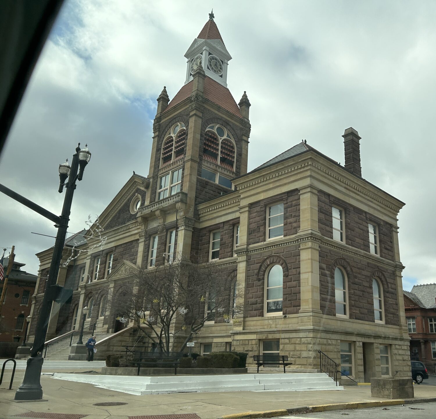 Historic Circleville is a small city of 14,000 residents about 25 miles south of Columbus. It is the county seat of Pickaway County. Circleville gets its name from the large, circular mound that determined the original layout of the city. Instead of preserving the mound, the settlers in Circleville excavated the mound and used it as the original town border. The courthouse is located in the center of the circle. Today the city is laid out in a grid pattern and doesn’t retain any of the circular nature of the mound.
