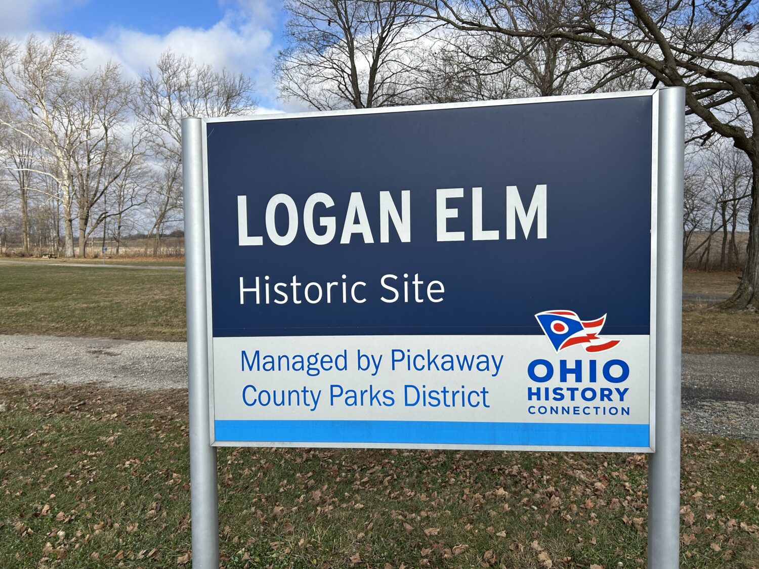After checking out historic Circleville, Tom and I headed to some outlying historic areas. We went to the Logan Elm first, which is one of the Ohio History Connection sites (in my little passport book). Logan Elm State Memorial Park was established in 1912 to honor Chief Logan and the place where he made his poignant speech. “Who is there to mourn for Logan? Not one.” Although the Logan elm died in 1964, a new elm was planted in its place.