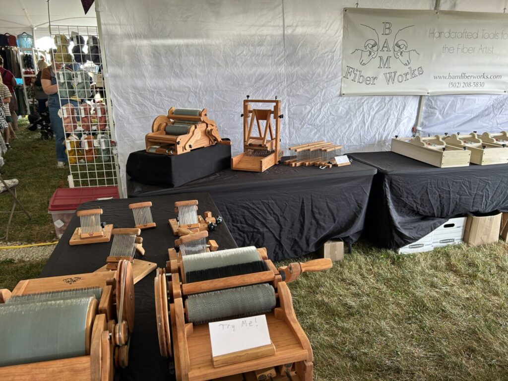 On September 20 I attended the Wool Gathering at Young’s Dairy. This was the 29th Wool Gathering. I have thought about going previously, but went to the Autumn Fiber Festival in Mansfield or the Great Lakes Fiber Show in Wooster instead. When my hip replacement surgery was scheduled for October 8, I knew the Autumn Fiber Festival on October 18 was not going to be a good choice. After a busy summer of spinning at Cumberland Gap, I needed more historically correct roving.