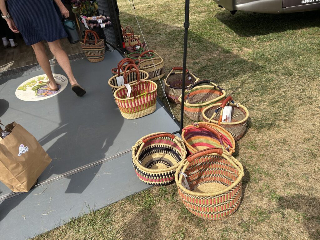 After checking out the live animals, we went in search of John, Jackie and Pookah. We found them on the Dairy side of Young’s, as opposed to the Wool Gathering side. The Dairy side was just as crazy busy as the Wool Gathering. The food line was out the door. We found a quiet, shaded picnic spot and ordered our food online. Tom and John fetched it when it was ready, which took a while. When it came, Jackie’s order was wrong. Tom went back to get the right ice cream order for Jackie, because you have to have ice cream when you go to Young’s Dairy.